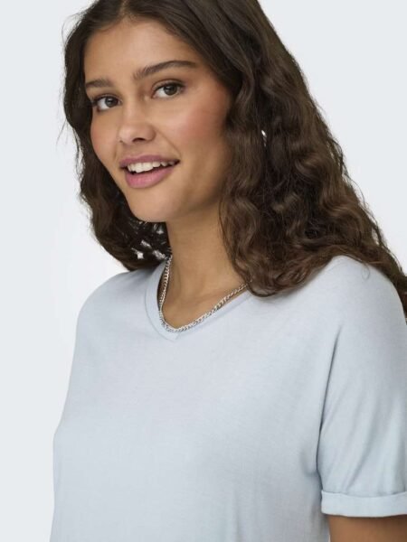 NyVelg alternativ Dette produktet har flere varianter. Alternativene kan velges på produktsiden Hurtigvisningkr 199,95Supermyk og behagelig t skjorte med v hals i viskose og med fabelaktig stretch som faller fint. – Produkttype: Topp – Hals: V-hals – Erme: Korte ermer – Ermer: Ermer med oppbrett – Passform: Normal passform Produksjon: Rundstrikket Produksjonsdetaljer: Enkel jersey Sammensetning: 96 % viskose, 4 % elastan