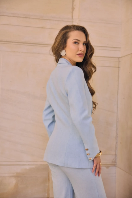 Velg alternativ Dette produktet har flere varianter. Alternativene kan velges på produktsiden Hurtigvisningkr 799,00Flott balzer/dressjakke i nydelig blå farge. – Strukturert blazer i lett stoff – Klassisk skreddersydd krage – Lukking med gullknapp – To lommer med klaff foran – Passer perfekt til bukser, kjole eller skjørt Modellen er 1,75 m høy og bruker størrelse S. Sammensetning: 100 % POLYESTER
