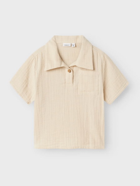 Lag et stilig antrekk for barnet ditt med denne lette og luftige sommerskjorten, perfekt for solrike dager og lyse netter. Det vevde stoffet har et tydelig kryssmønster og en lett teksturert overflate for et rent og klassisk utseende.