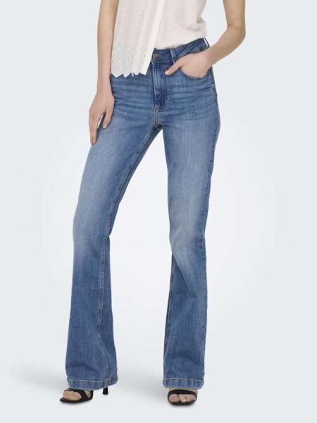 Velg alternativ Dette produktet har flere varianter. Alternativene kan velges på produktsiden Hurtigvisningkr 449,95Trendy jeans med utsving/ Sleng - Lukking: Glidelås - Lommer: Baklommer, frontlommer - Midje: Høy midje - Ekstra detaljer: Belteløkker - Passform: Flared Fit - jeansen sitter på hoftene og lårene dine og utvider seg fra kneet og ned Produksjon: Vevd Produksjonsdetaljer: Twillvev Sammensetning: 98% bomull, 2% elastan
