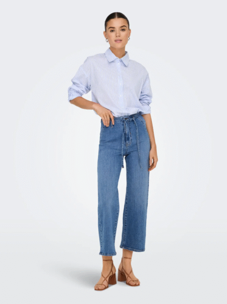 Velg alternativ Dette produktet har flere varianter. Alternativene kan velges på produktsiden Hurtigvisningkr 499,95Jeans med bred passform - Lukking: gylffeste med knapp - Lommer: Baklommer, Myntlomme, Frontlommer - Midje: Høy midje - Lengde/størrelse: Beskåret - Ekstra detaljer: Belteløkker - Passform: Denne brede benstilen er designet med komfort i tankene, med god plass fra hofte til ankel Kvalitetsbeskrivelse Kjønn: Kvinne Produksjon: Vevd Produksjonsdetaljer: Twillvev Stiltype: JEANS Sammensetning: 98% bomull, 2% elastan