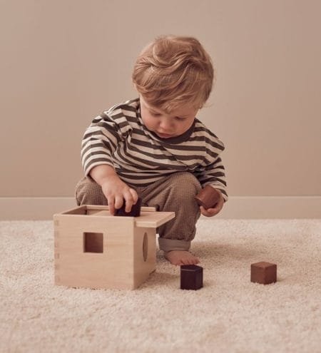 kr 299,00Et klassisk leketøy som oppmuntrer til læring av ulike typer geometriske former for å utvikle finmotorikk og koordinasjon. Denne sorteringsboksen i naturlig tre kommer med tre forskjellige mørke og lyse treklosser i forskjellige former som passer i de tilsvarende hullene. Behandlet med en gjennomsiktig vannbasert lakk. Det avtakbare skyvelokket gjør […]