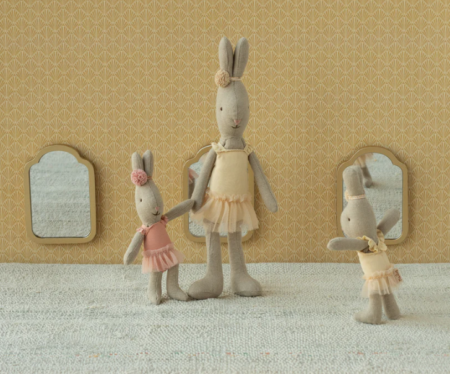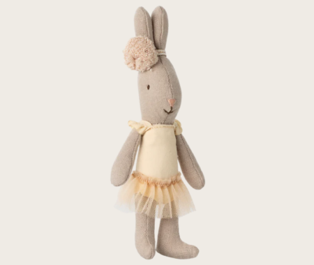 kr 219,00Den velkjente Maileg mikrokaninen er utkledd som ballettdanser. Den har på seg dress og tyllskjørt og har en liten dekorasjon rundt de pekende ørene. Størrelser Høyde: 14,00 cm Anbefalt alder ALLE ALDRE Primærmateriale Lin/Bomull Fyll Gjenvunnet polyester/PP-pellets Vedlikeholdsinstruksjoner Kosedyr: Maskinvask ved 30 grader C
