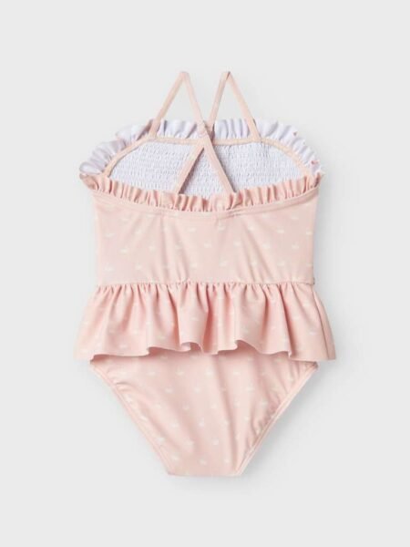 svanemønster og rysjerTa en svømmetur eller nyt det varme været i kule badetøystiler som vil gi barnet ditt et trendy utseende. - Produkttype: Badetruse - Ekstra detaljer: volanger - Print: Print gjentatt over hele overflaten av produktet - OBS: ADVARSEL! Holdes unna brann Produksjon: Circular Knit Stiltype: BABYPLAG Sammensetning: 84% polyester - resirkulert, 16% elastan Bærekraftsbeskrivelse Hovedmaterialet i dette produktet inneholder minimum 50 % resirkulert polyester. Resirkulert polyester sparer naturressurser og reduserer mengden avfall