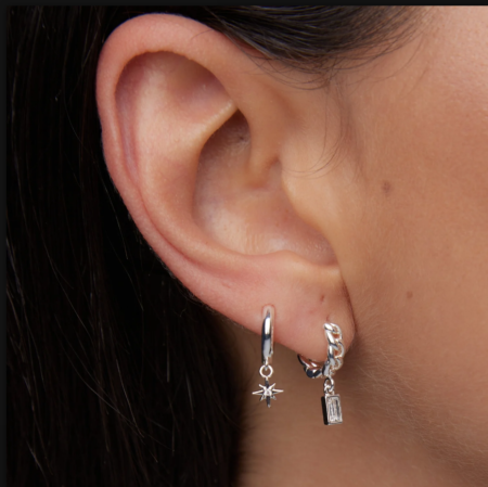 «Orelia,Pave Micro Starburst Huggie Hoop, Øredobber, 925 sterlingsølvbelagt messing, Silver» er lagt til handlekurven din. Vis handlekurv