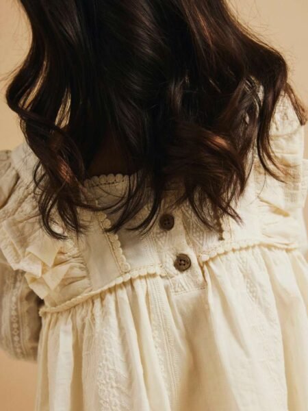 - Hals: Firkantet hals - Erme: Lange ermer - Mansjetter: Elastiske mansjetter - Lukking: Knappelukking - Ekstra detaljer: Frills, Broderi - Passform: Vanlig passform Produksjon: Vevd Stiltype: DRESS Sammensetning: 100% bomull - økologiskVelg alternativ Dette produktet har flere varianter. Alternativene kan velges på produktsiden
