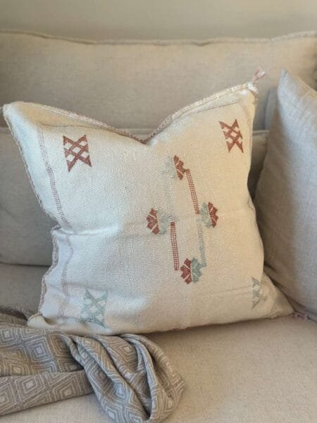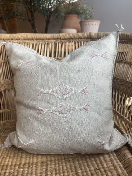 kr 599,00Dette putetrekket er vevd av naturlige økologiske fibre fra agavekaktusen. Putene er plantefarget og fullstendig økologiske. Putetrekkene har ligget ute under Marokkos sol og » bleket for å få frem de fine fargene, Putene fremstår som unike, og det kan være at de ikke er feilfrie. Det uperfekte er det perfekte.