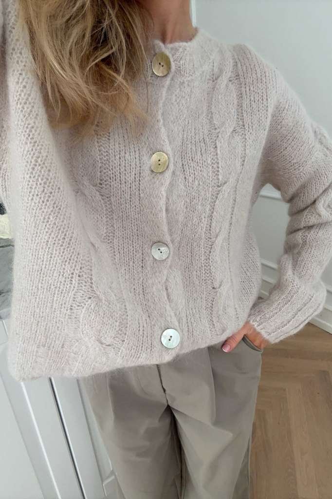 Cardiganen har en avslappet passform både i bolen og ermene.