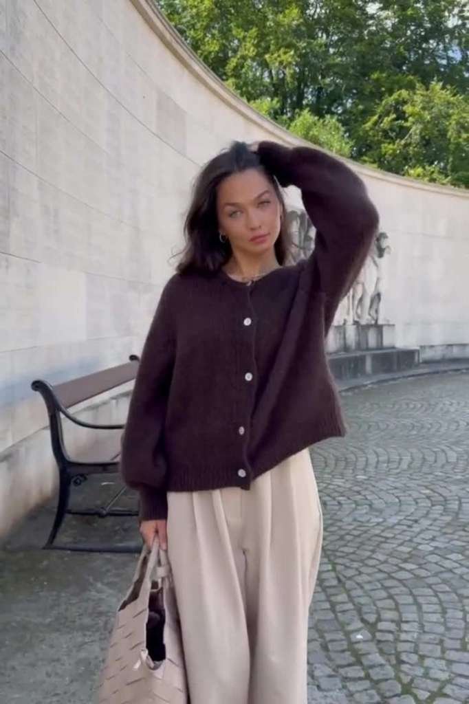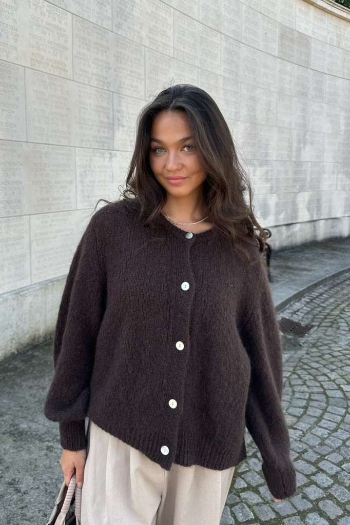 En vakker, lodden mohair-cardigan i Mørk Brun