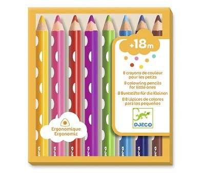8 fine fargeblyanter laget for de minste kunstnerne. Blyantene er ergonomisk utformet med sin trekantede fasong, gode å holde i og enkle å tegne med. Med disse sterke, flotte fargene kan man virkelig utfolde sin kunstneriske frihet!