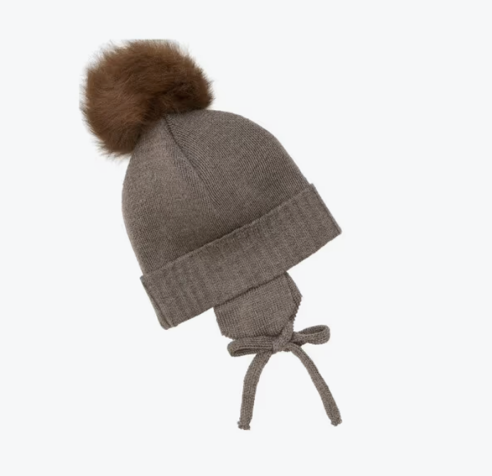 Denne strikkede luen i myk merinoull har en leken alpakadusk på toppen.