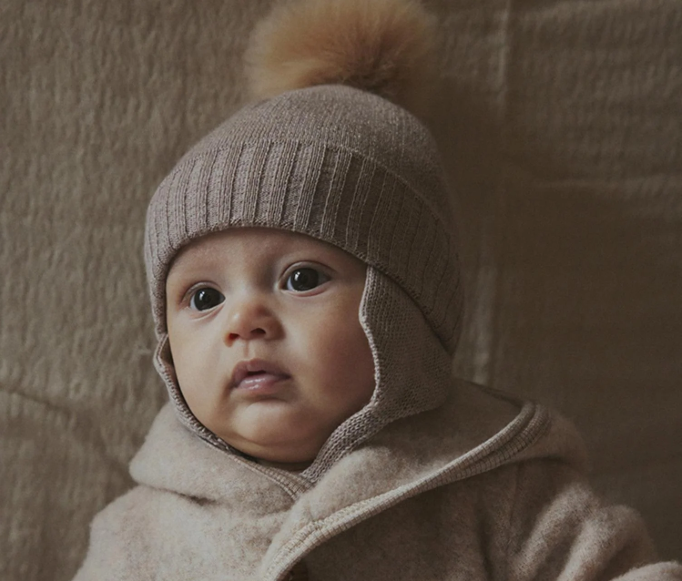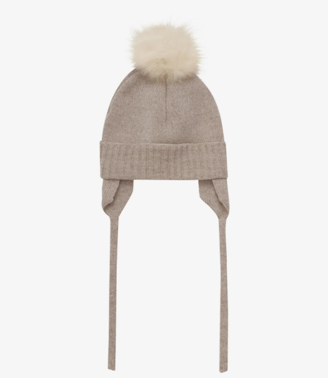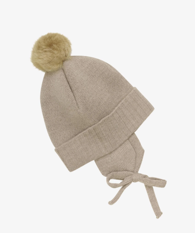 Denne strikkede luen i myk merinoull har en leken alpakadusk på toppen.