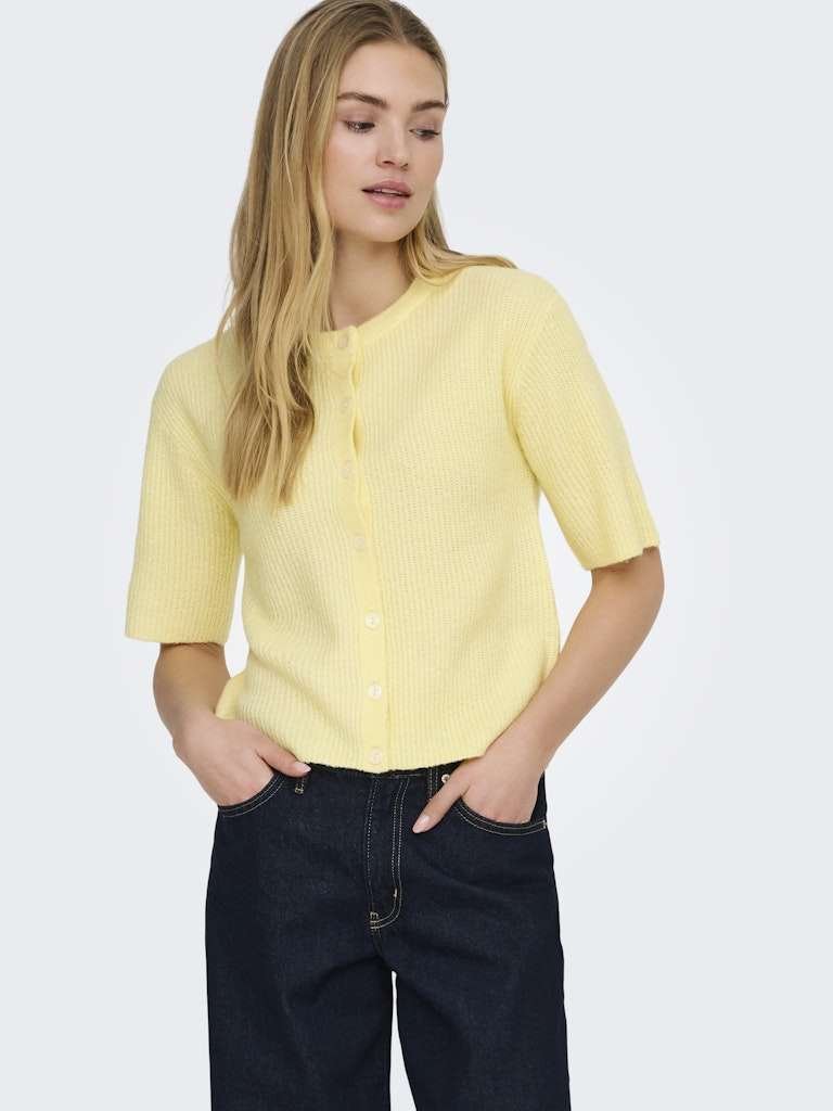 JDY CATTY 2/4 CARDIGAN KNT NOOS, Double Cream MELANGE- Lys Gul