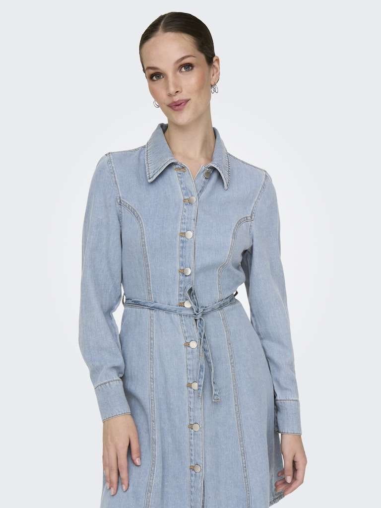 JDY KAMMA LS BELT SHORT DRESS DNM, Denim Kjole, Light Blue Denim