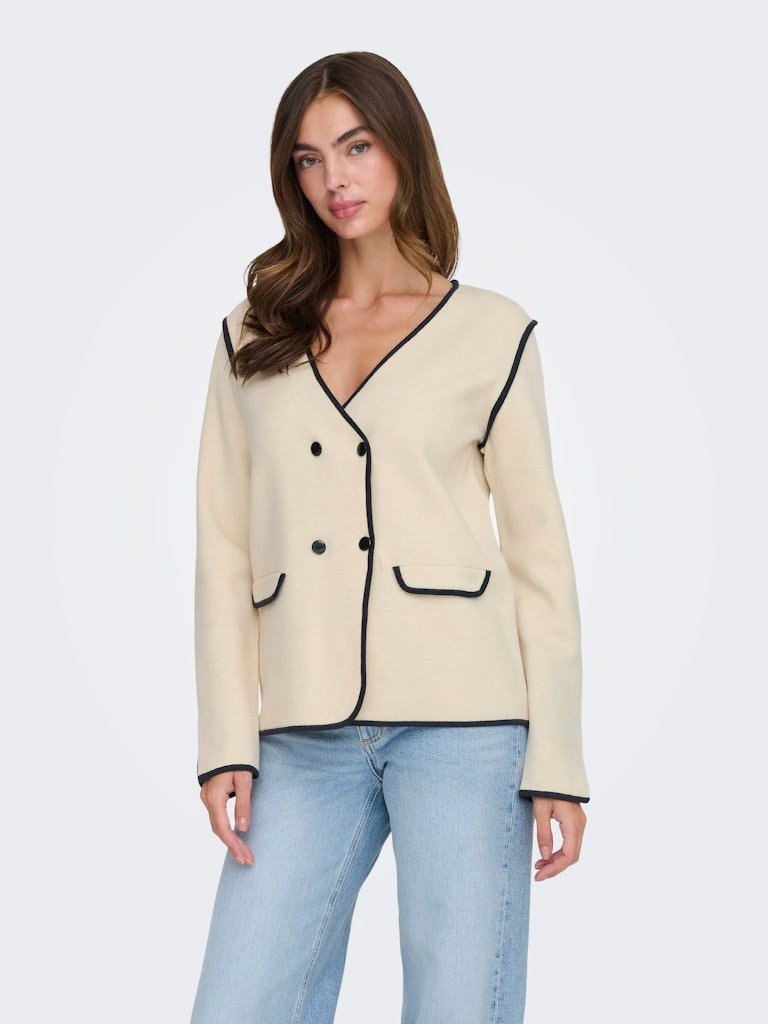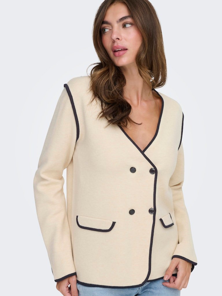 JDY PRIME LIFE CONTRAST L/S BLAZER KNT, CARDIGAN, Tapioca TOTAL ECLIPSE CONTRAST