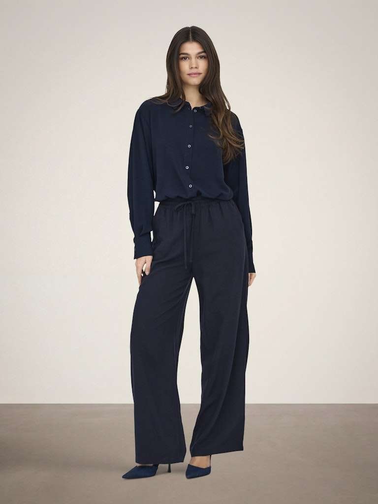 JDY SAY L/S LINEN LOOSE SHIRT WVN NOOS, SKJORTE I 80%VISKOSE 20%LIN, Skiy Captain – Mørk Blå