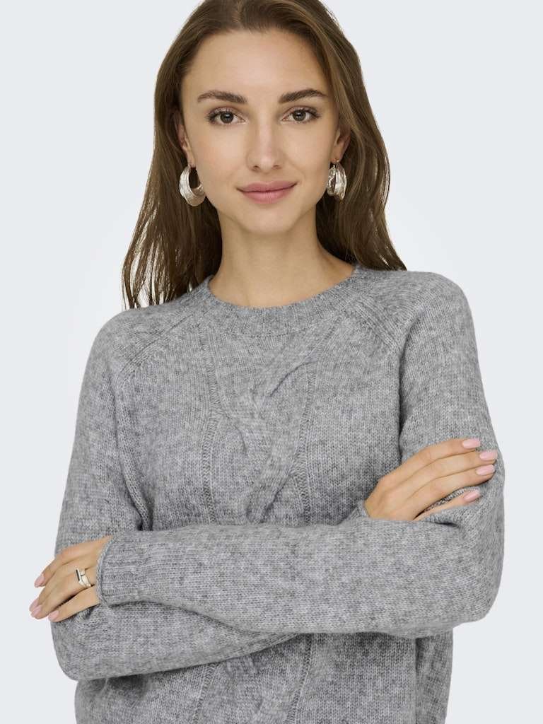 JDY SUSANNA L/S O-NECK RAGLAN PULL KNT,Strikkegenser, Medium Grey Melange, Grå