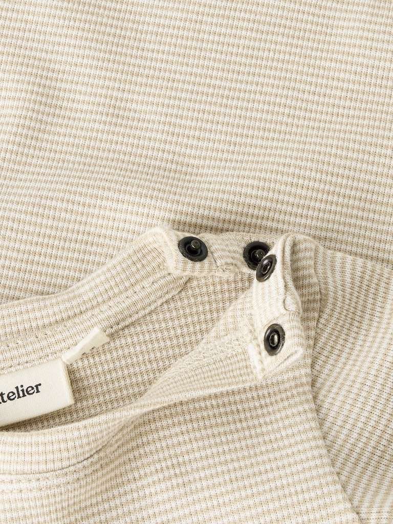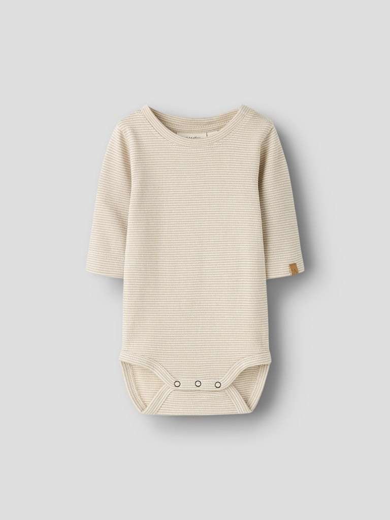 Deilig body i tynnstripet beige og offwhite/ hvit