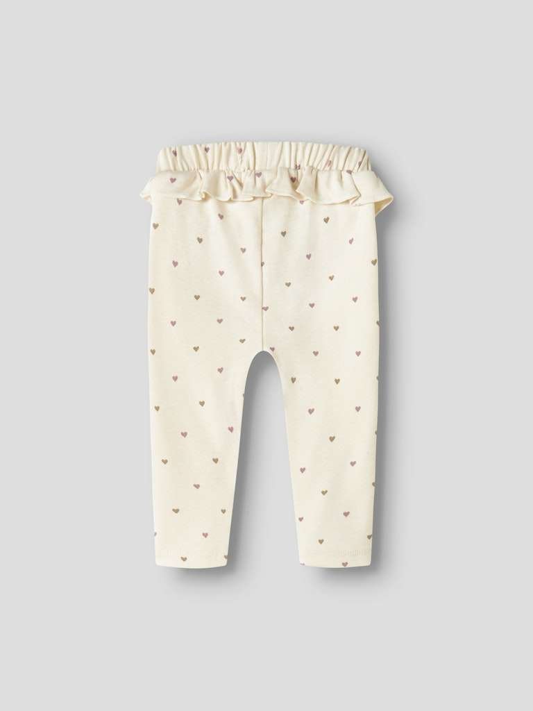 Nydelig og myk bukse med brune og rosalilla hjerter