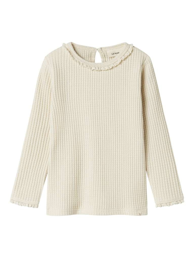 Nydelig og enkel genser i vaffelmønster med blondedetaljer på erme og hals