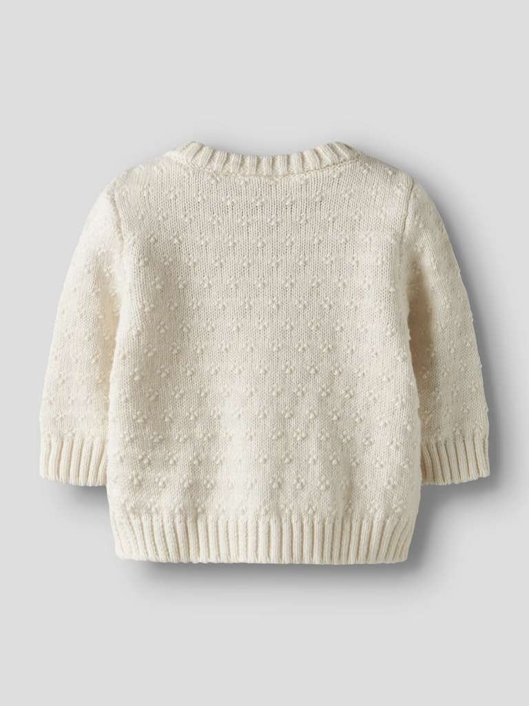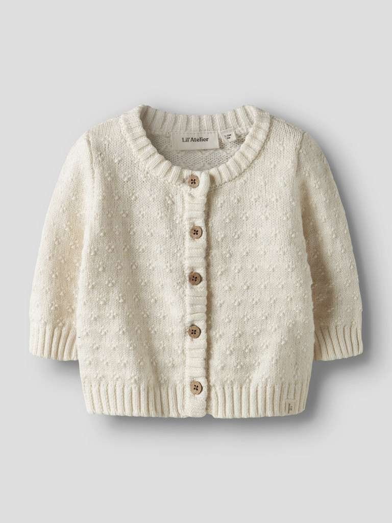 Nydelig strikkejakke med fine treknapper.