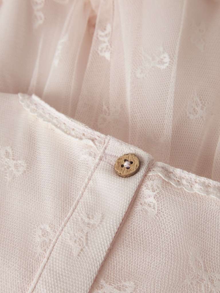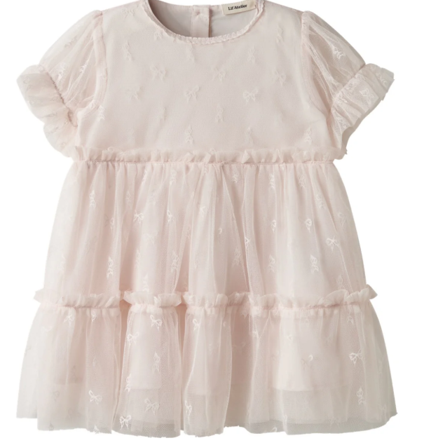 Helskjønn kjole med tyll og delikat sløyfe print
