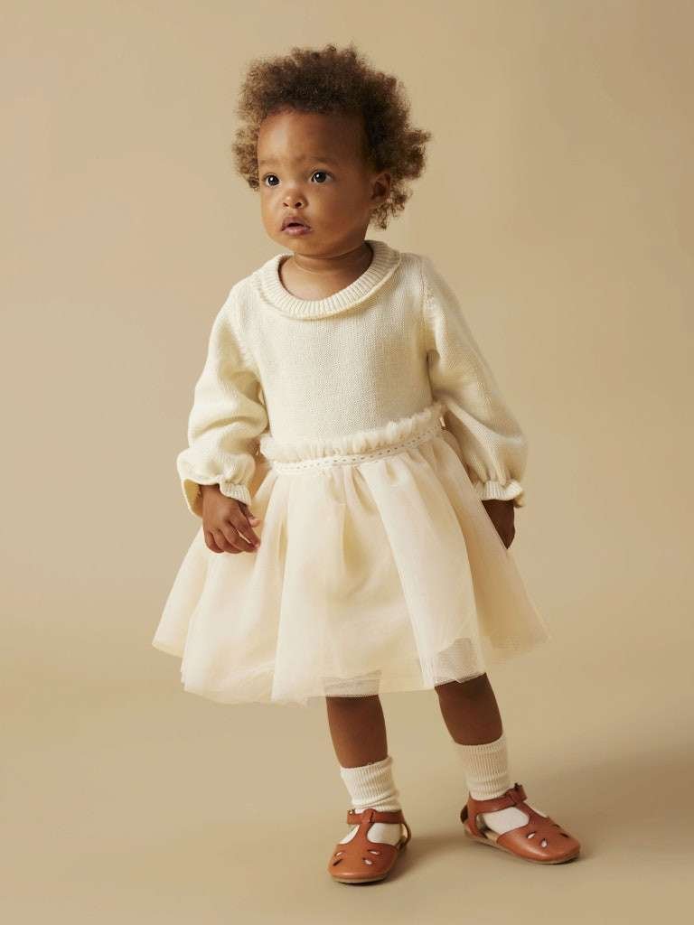 Sjekk denne fantastisk nydelige kjolen med strikket overdel i bomull og skjørt i tyll. med bleiebukse . Altså en bodykjole som kjolene fra Lil Atelier har