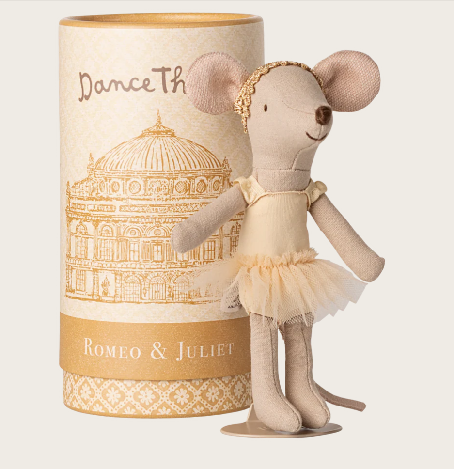 En ekte ballettdanser. Musen kommer i et vakkert rør med et stativ inni,