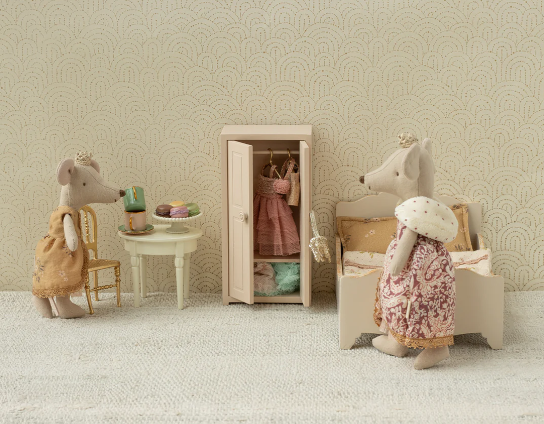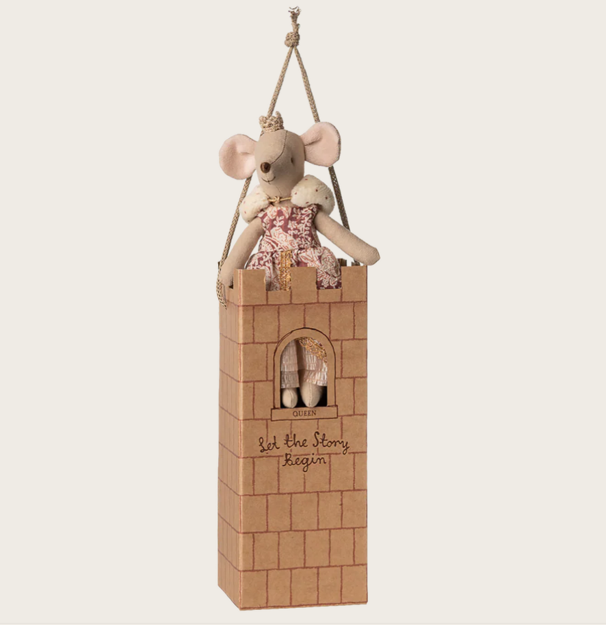 Dronningmusen i mors størrelse er klar til å være vertinne på slottet sitt.