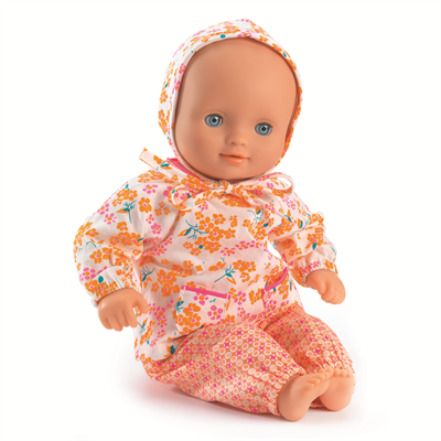 Et herlig sett til dukken i tre deler med bukse, bluseog kyse/lue