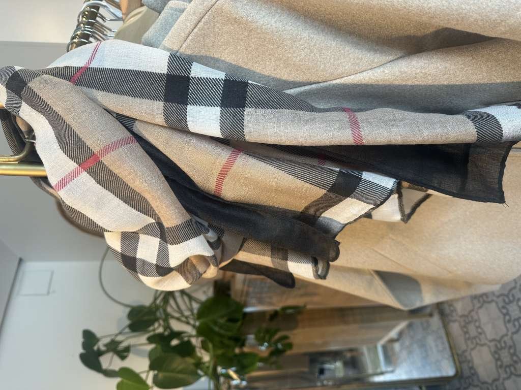 Stort og deilig Burberry look skjerf i 100% viskose