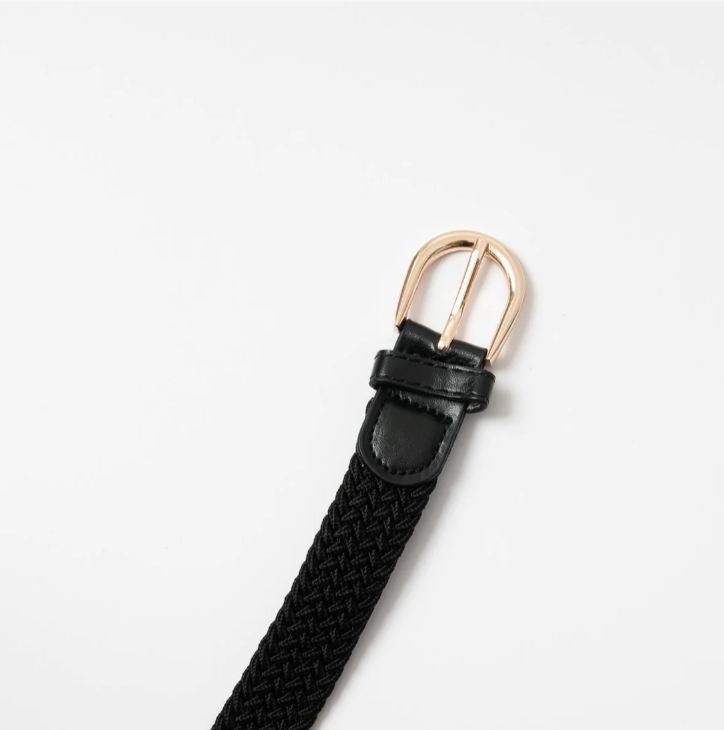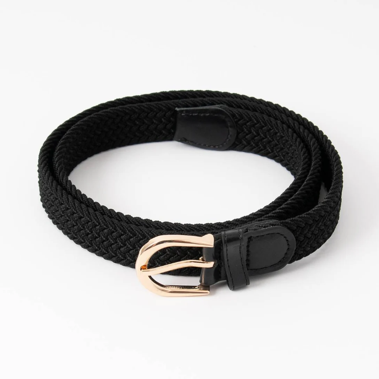 Rosenvinge, Smalt flettet strikkbelte, gull – svart (722101)