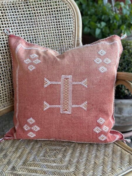 kr 599,00Dette putetrekket er vevd av naturlige økologiske fibre fra agavekaktusen. Putene er plantefarget og fullstendig økologiske. Putetrekkene har ligget ute under Marokkos sol og » bleket for å få frem de fine fargene, Putene fremstår som unike, og det kan være at de ikke er feilfrie. Det uperfekte er det perfekte. putene varierer noe i farge og broderi